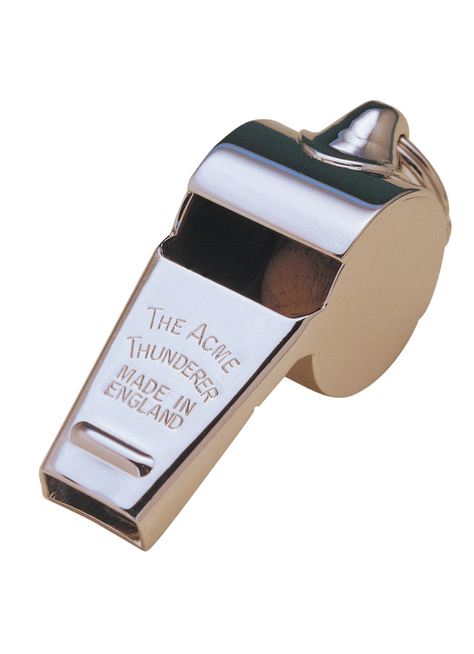 Brass nickel plated medium size whistle with medium tone.