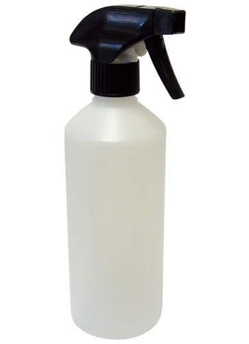 Plastic. 2 spray settings: single jet and wide spray. Nozzle can also be turned off. 500ml