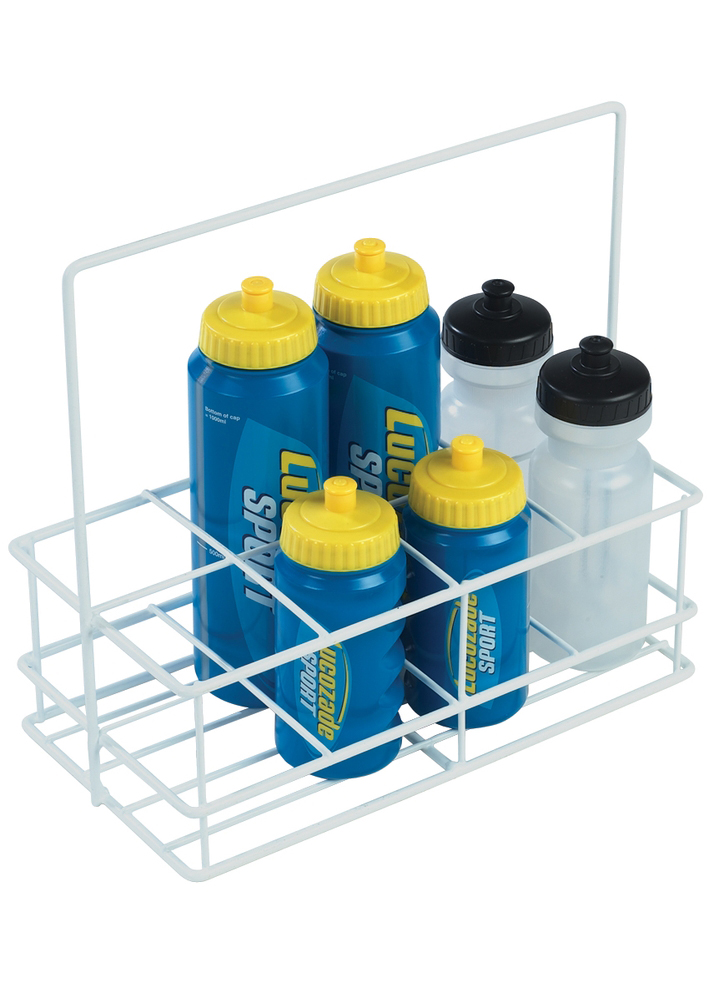 Plastic-coated wire. The larger 82mm2 compartments mean this carrier will accommodate slightly broader bottles.