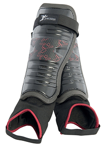 Moulded PPCP shell, 6mm plain black EVA backing foam. Stitched, knitted ankle sock.
