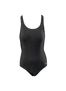Specialist fabric retains shape and ensures longevity. Chlorine-resistant. Medium leg. 82% nylon, 18% spandex.