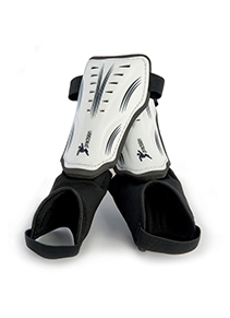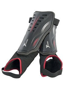 Moulded PPCP shell, 6mm plain black EVA backing foam. Stitched, knitted ankle sock.