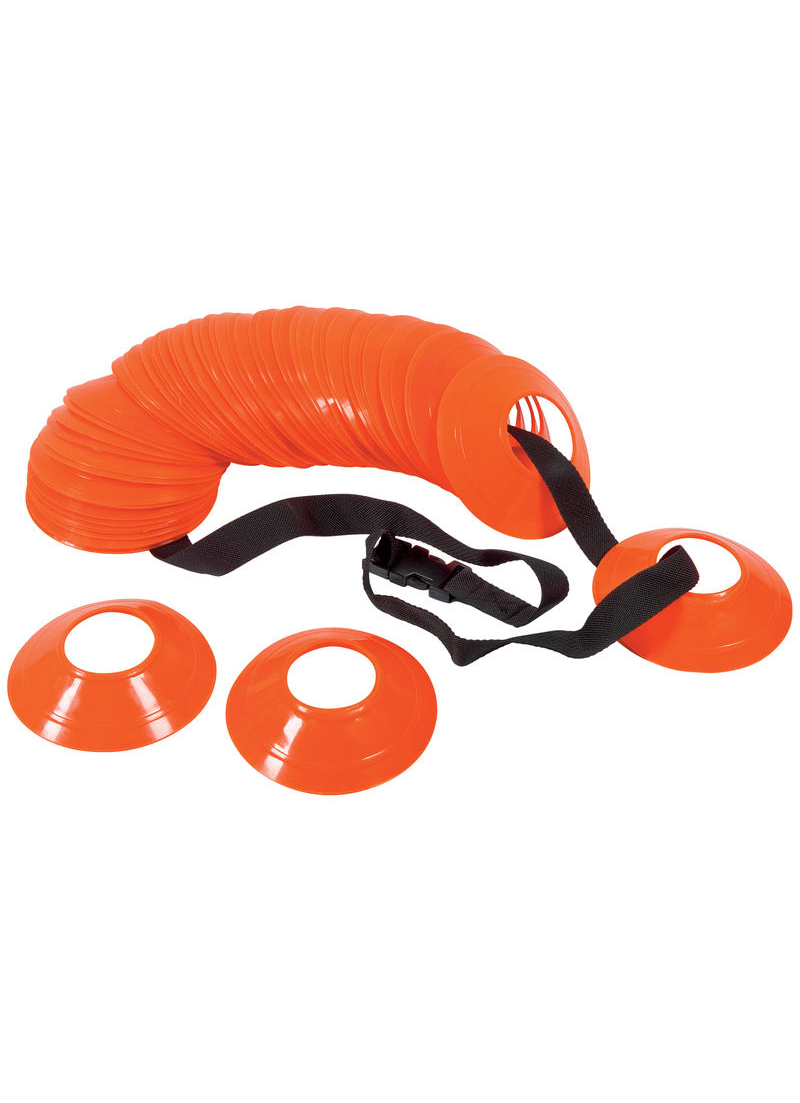 Set of 60 cones (20 x yellow, 20 x orange, 20 x white). Includes carry strap.
