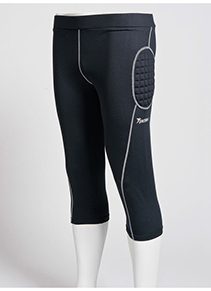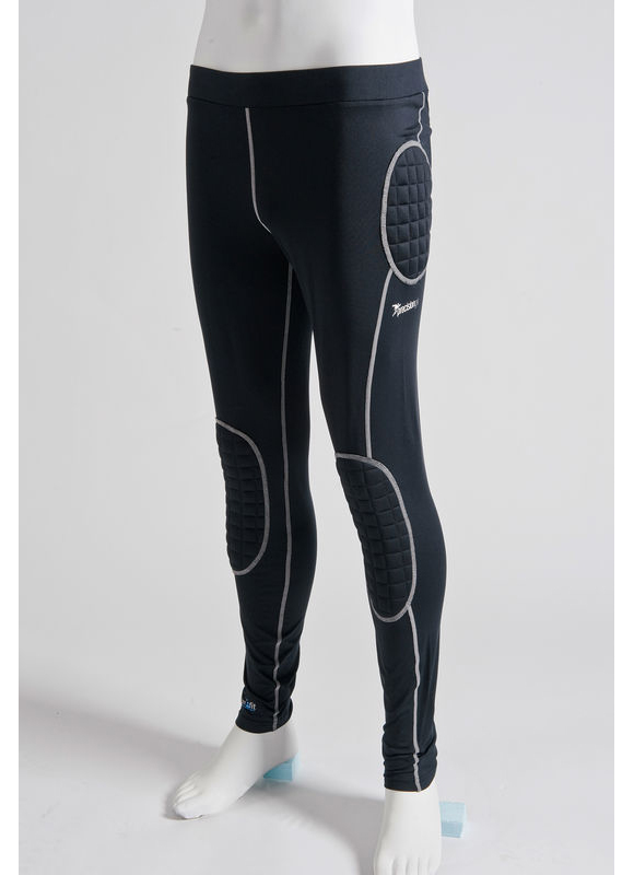 90% polyester, 100% spandex (240gms). Precision Fit fabric. Brushed inside. Elasticated waist. Padding on hips, lower back and knees. Colour: black/silver.