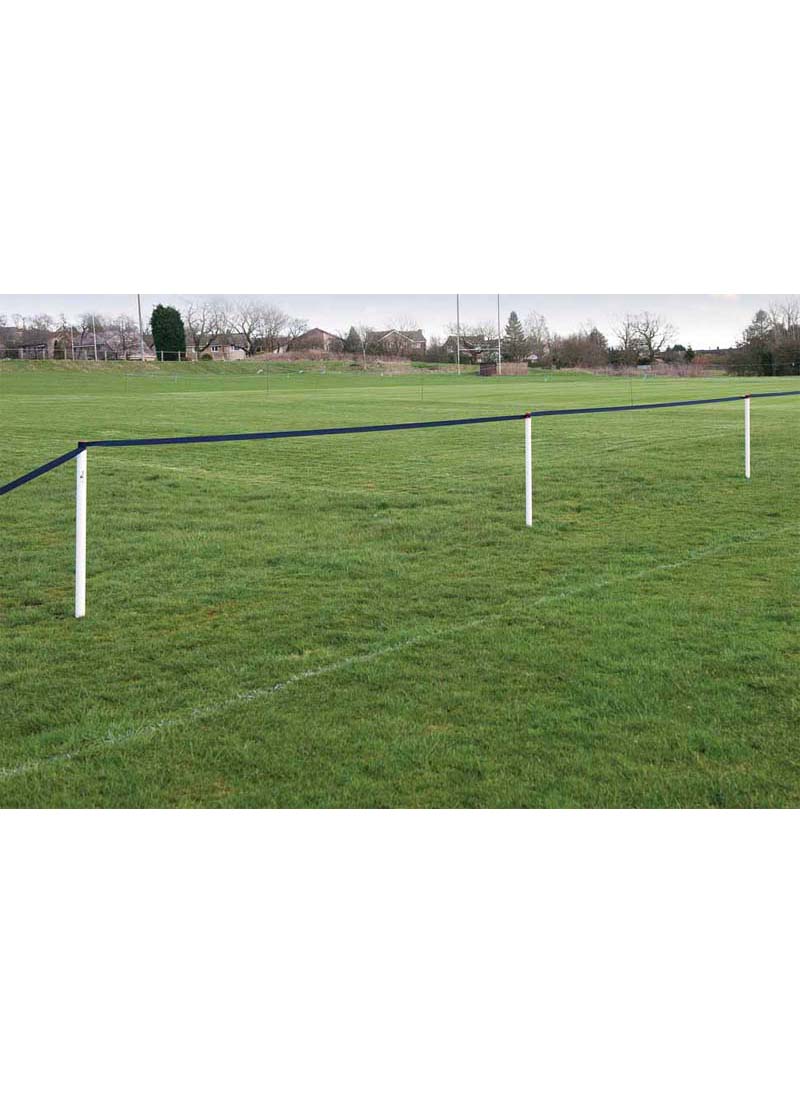 Suitable for indoor and outdoor use. Set includes: 5 x poles, 50 metre roll of plain tape, 1 x winding reel, 1 x metal tool, 1 x carry bag.