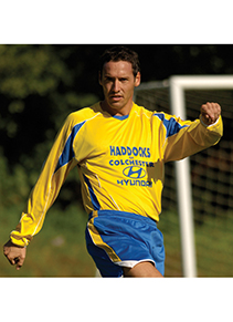 90% polyester, 100% spandex (240gms). Precision Fit fabric. Brushed inside.